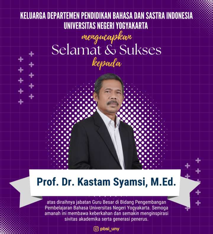 Prof. Dr. Kastam Syamsi, M.Ed. sebagai Guru Besar Bidang Pengembangan Pembelajaran Bahasa.